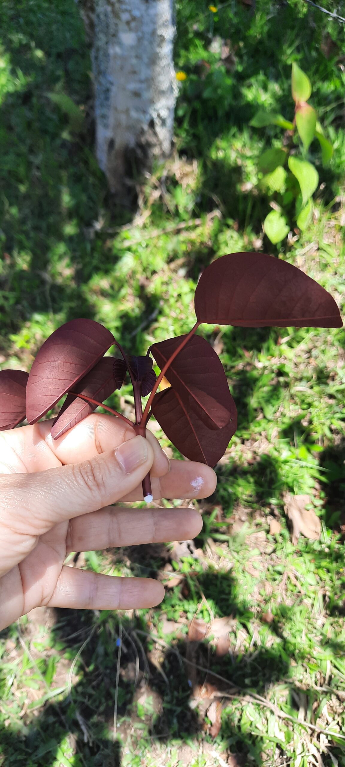 Me acerqué y me gustó aún más. Sus hojas rojas, lisas, me parecieron tiernas. Luego, corté una ramita para meterla en mi herbario y una leche se asomó en el pecíolo. “Lo usan para cicatrizar”, me dijo, Fauner, uno de los líderes comunitarios que guiaba nuestro recorrido.
