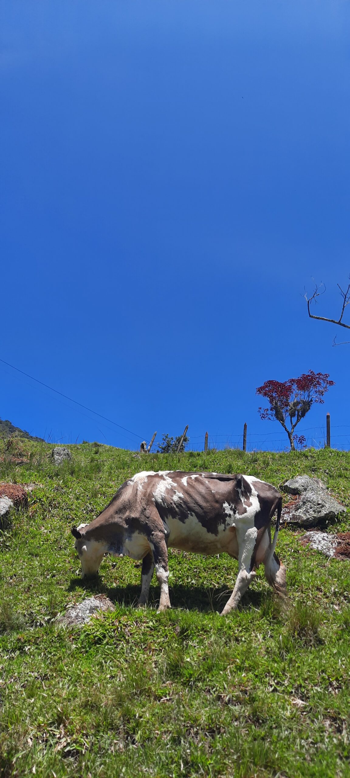 No lo conocía. Lo elegí por la soledad de su rojo sobre la soledad del verde de un potrero. Porque donde antes, en algún momento, hubo un bosque hoy solo hay un suelo desnudo. Bueno, cubierto por la hierba y los pasos de las vacas. Hoy, también por nuestras botas.