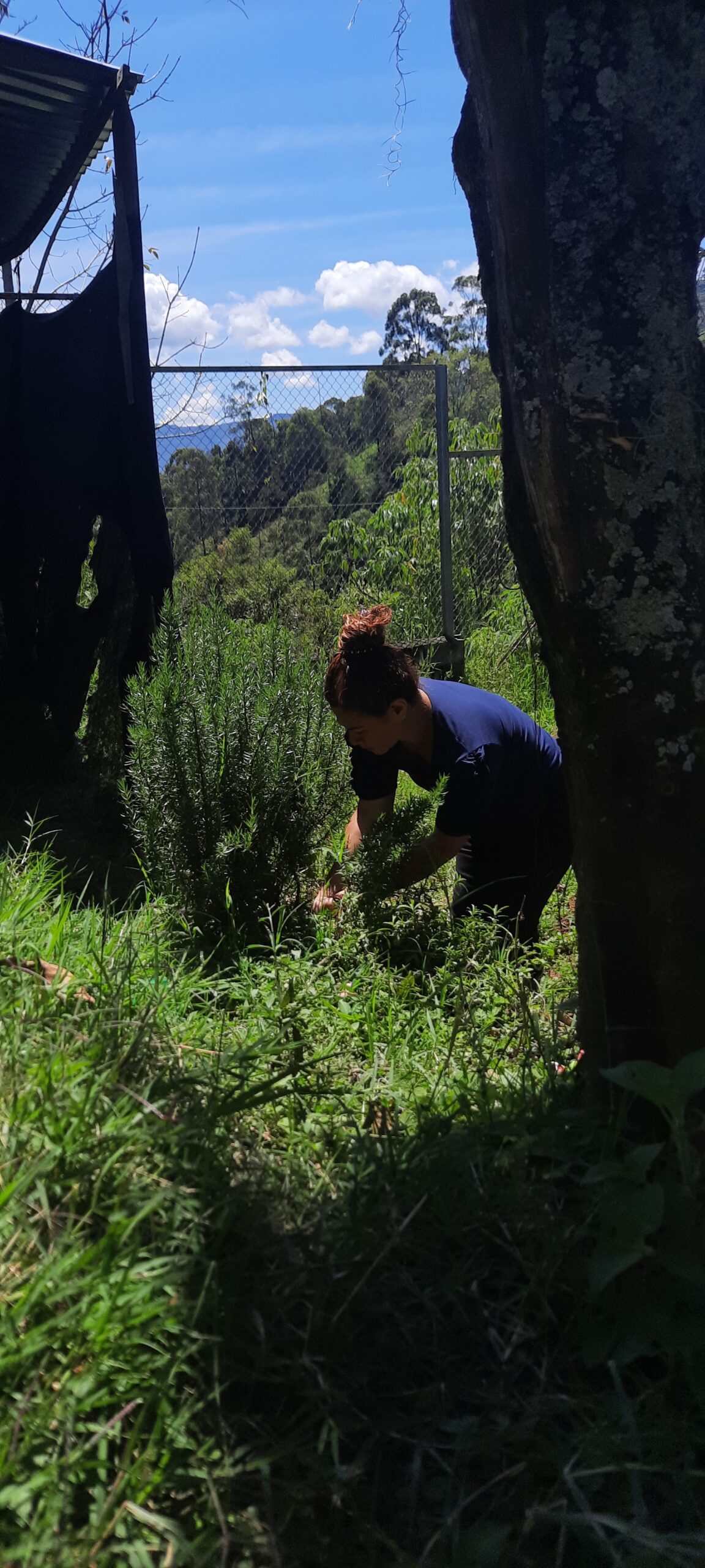 Durante el recorrido, no podía aguantar el impulso de llevarme los piecitos. De la huerta de Esperanza, una caleña que ama la lechuga, me traje un romero. De donde Marisol tomé un ají. Ella cuida la huerta con sus nietos. Tiene caña, col crespa, tomate uchuva, cidrón, mostaza, col mantequilla, hierbabuena, botón de oro. El cilantro, por su parte, lo conseguí en el separador de la esquina de Guillermina. Finalmente, el matarratón y el poleo, me los dio Pastora.