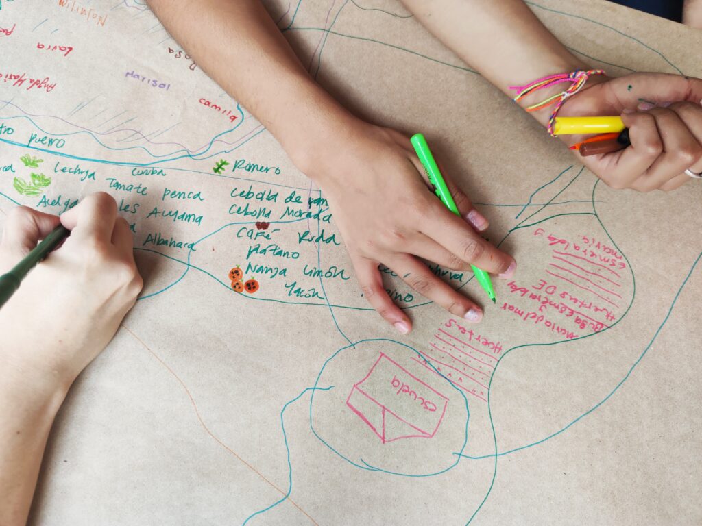 A las niñas y niños también se les enseña a compostar y se les cuenta para qué sirven las plantas medicinales. Se les recuerda que las lechugas y la leche no vienen del EXITO, ni de la nevera de la casa, sino que campesinas y campesinos se levantan desde las 4:00 am de la mañana a sembrar y a cuidar el agua, a proteger árboles nativos, el germoplasma y el sotobosque.